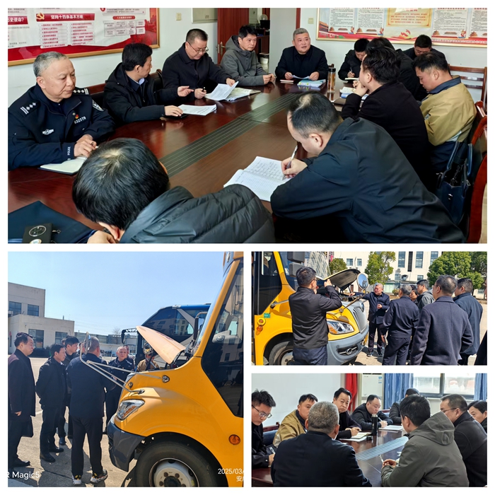 為深刻汲取淮南“2·27”校車事故慘痛教訓(xùn),消除安全隱患,2025年3月17日上午,安慶市校車聯(lián)席會(huì)議安全檢查組一行四人到童安校車服務(wù)分公司開展督導(dǎo)檢查,桐城市教育局局長(zhǎng)疏波、桐城市教育局黨委委員吳瀾、桐城市交警大隊(duì)副大隊(duì)長(zhǎng)汪夕亮,桐城市道路運(yùn)輸管理中心副主任汪郁陪同檢查。