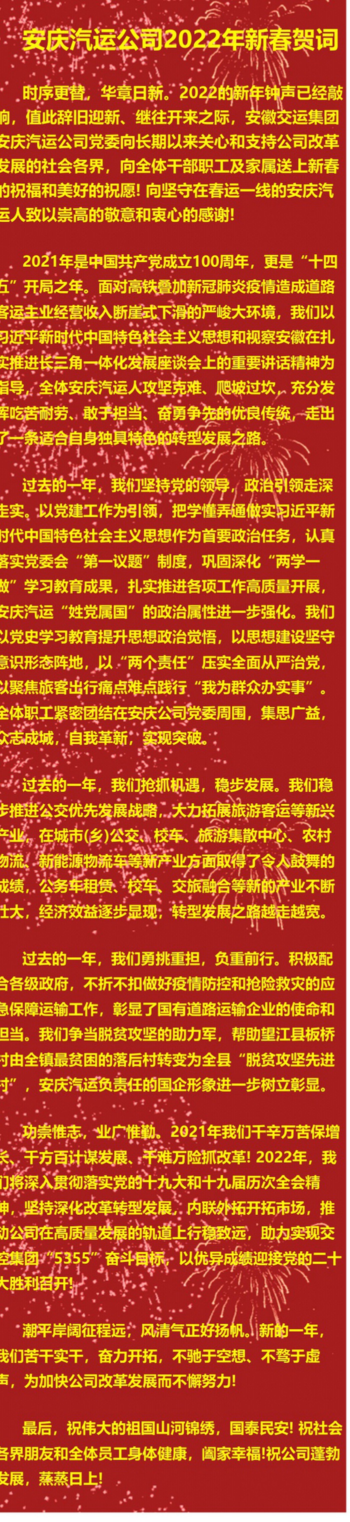 安慶汽運(yùn)公司2022年新春賀詞