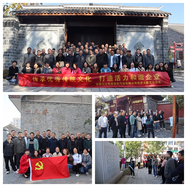 為深入貫徹習(xí)近平總書記考察安徽時(shí)的重要講話精神,進(jìn)一步弘揚(yáng)中華優(yōu)秀傳統(tǒng)文化,加強(qiáng)精神文明建設(shè),提升黨員干部的崇德尚禮品質(zhì),安慶公司黨委于11月7日至8日,精心策劃并組織了以“傳承文化精髓,打造和諧企業(yè)新篇章”為主題的黨日活動(dòng)。此次活動(dòng)由公司黨委主導(dǎo),桐城分公司黨支部具體承辦,市客運(yùn)分公司黨支部積極參與協(xié)辦,實(shí)現(xiàn)了全司黨員干部的廣泛參與。